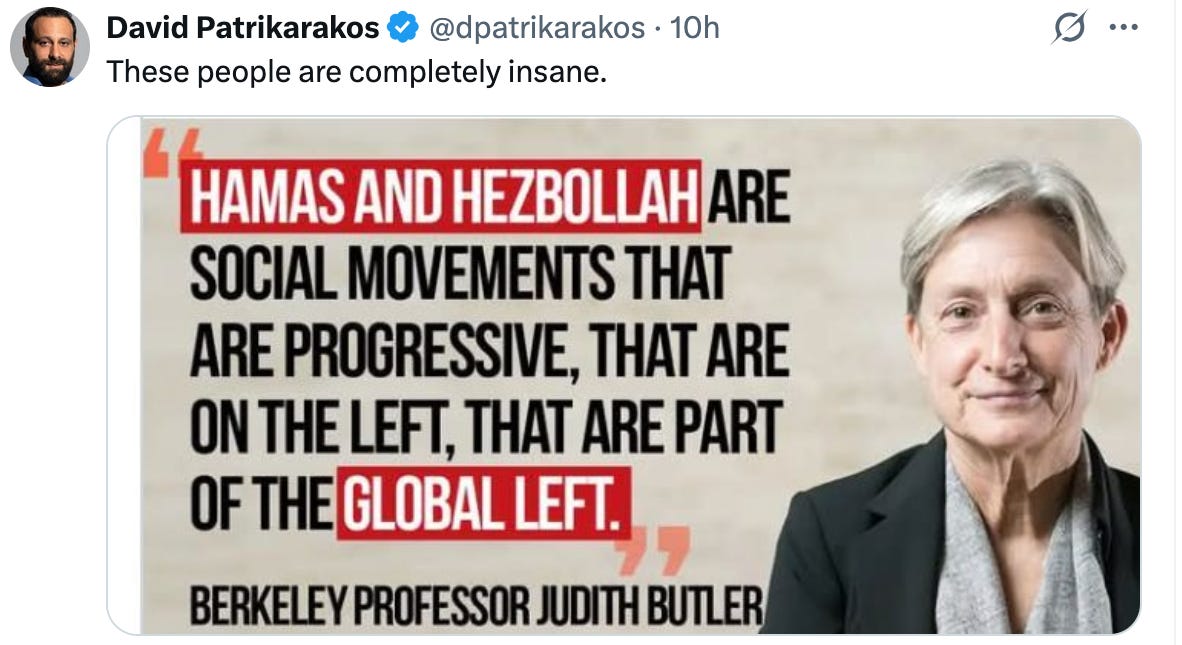 - Internalized Misogyny: adopting sexist views that defend men (in this case Hamas, Hezbollah, and the rest of the Islamic Regime) at the expense of other women ie, the women of Iran, the women of Israel, Jewish women generally, women who believe in biological fact, women who vote differently, imperfect victims of loved celebrity males, the list goes on.