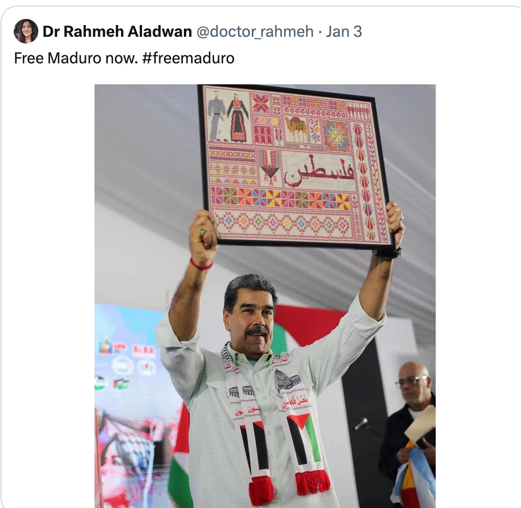 The left still think it’s a “Zionist conspiracy” when we tell them Qatar (owner of Al Jazeera) has bought your favorite news channels and broadsheets. Why ever would Qatar be upset that the drug lord Maduro was captured? Doesn’t Islam forbid narcotics? Well two things. One: Qatar and Venezuela share a mutual friend - Iran who are financially tied to Venezuela, where Hezbollah operate, and Hamas has a rear base. Venezuela was their little offshore bank account. Beyond that, Doha PRs itself as an “indispensable mediator” between America and the US. Trump just told Qatar he doesn’t need them. He is dismantling Iran’s power base piece by piece. Adiós.