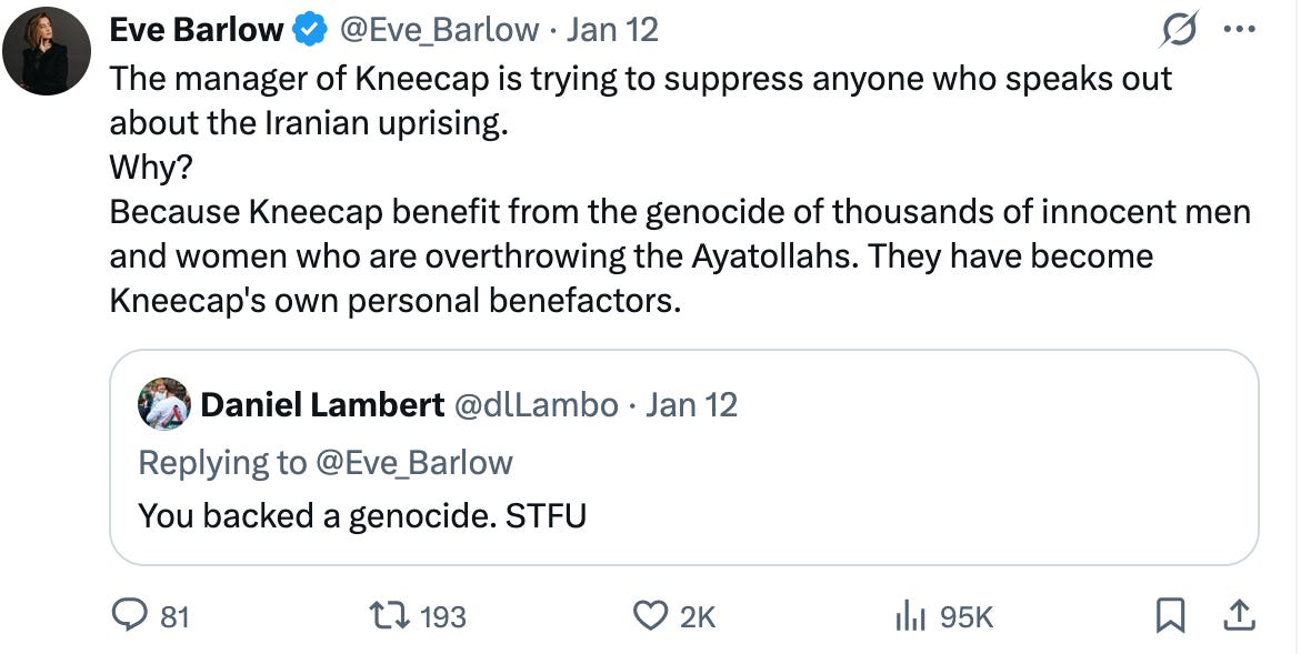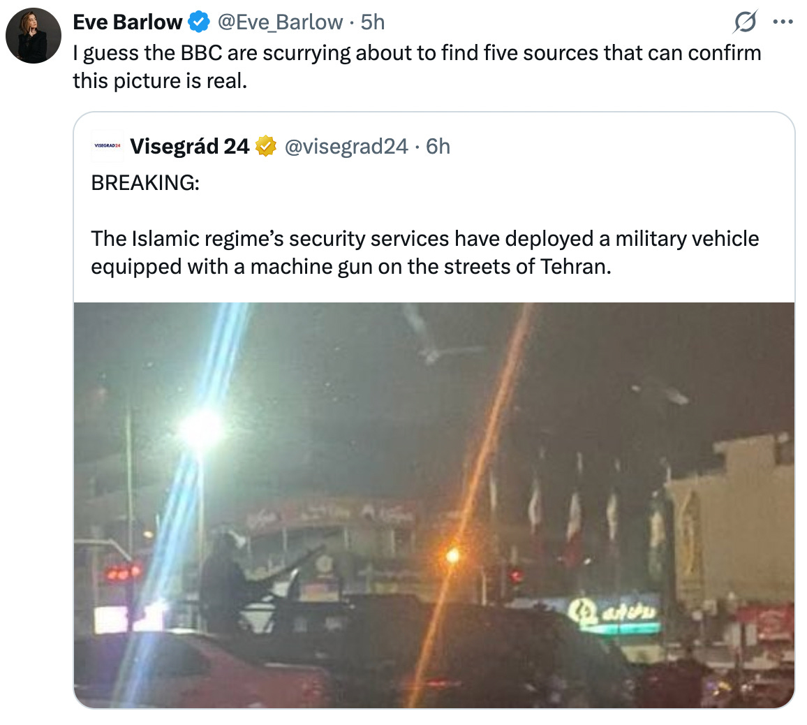I never thought I’d be here again fighting tooth and nail for a cause because they won’t. I went to war over a domestic violence trial. I stood in the killing fields after October 7. Here I am now for Iran. I stand on the right side of history, always. But I guess the “good guys” don’t. They are consistent(nly silent). All the influential people I once worked with or counted as friends, even family, would be fully supporting my work on the Iranian revolution right now – if they knew about it. Yet because they have been gaslit and manipulated by the self-serving idiotic bullying and deception of leftists, they have discarded our feeds under duress. Leftists are the biggest silencers in the game. And they have not done this out of morality. They've done it to get what they want. It's all about control and coercion. They’re such kind souls.