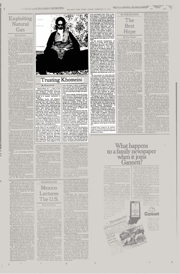 I stumbled upon this jaw-dropping New York Times piece from February 16, 1979 tonight. Read it. Titled: “Trusting Khomeini”. I have marked in bold the parts that made me gasp.